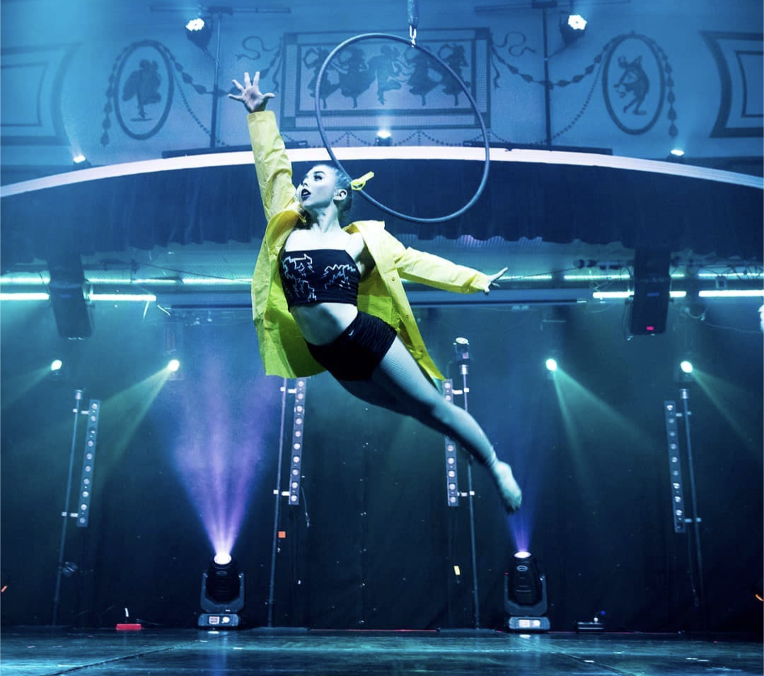 Emily is a national champion-winning performer with a flair for creating unforgettable aerial experiences. Specializing primarily in aerial lyra and straps, Emily’s performances captivate audiences with her storytelling, artistry and technical excellence.